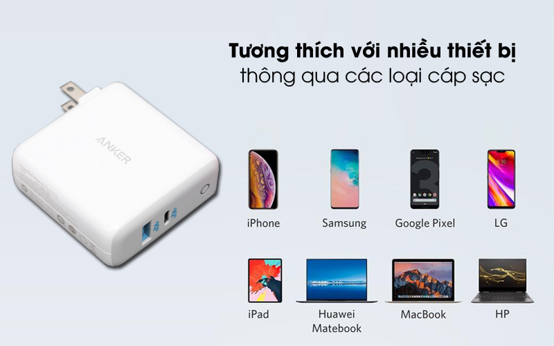 Dùng được với nhiều thiết bị - Adapter sạc Anker PowerPort Atom III A2322 Trắng