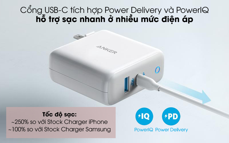 Adapter với công nghệ sạc nhanh Power Delivery và PowerIQ tích hợp trên cổng USB-C 3.0