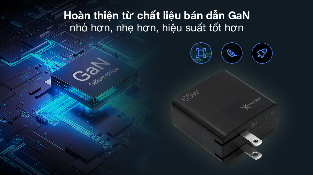 Sử dụng chất liệu bán dẫn GaN nhờ đó giúp giảm tối đa kích thước củ sạc nhưng vẫn cho hiệu quả chịu nhiệt tốt, khả năng dẫn điện cao hơn, đồng thời gia tăng hiệu suất sạc, mang đến lợi ích sử dụng cao cho người dùng.