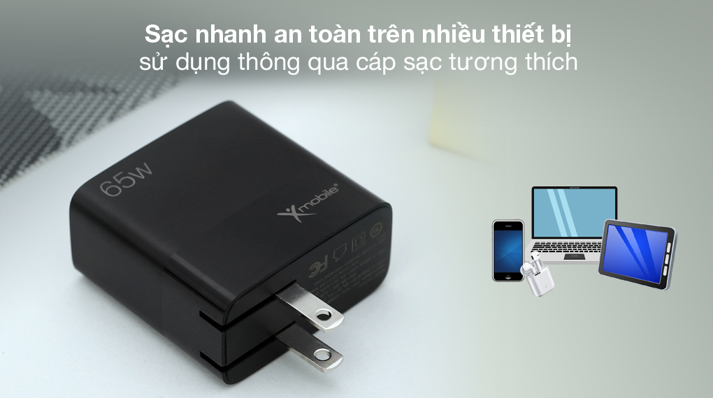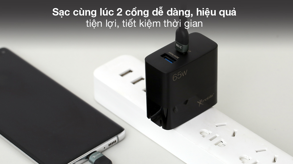 Lựa chọn Adapter Sạc 2 cổng USB Type C PD QC 3.0 GaN 65W Xmobile MFR65 Đen để sạc nhanh cho nhiều thiết bị di động mà bạn sở hữu, sử dụng linh hoạt, tiện lợi hơn mà vẫn đảm bảo an toàn.