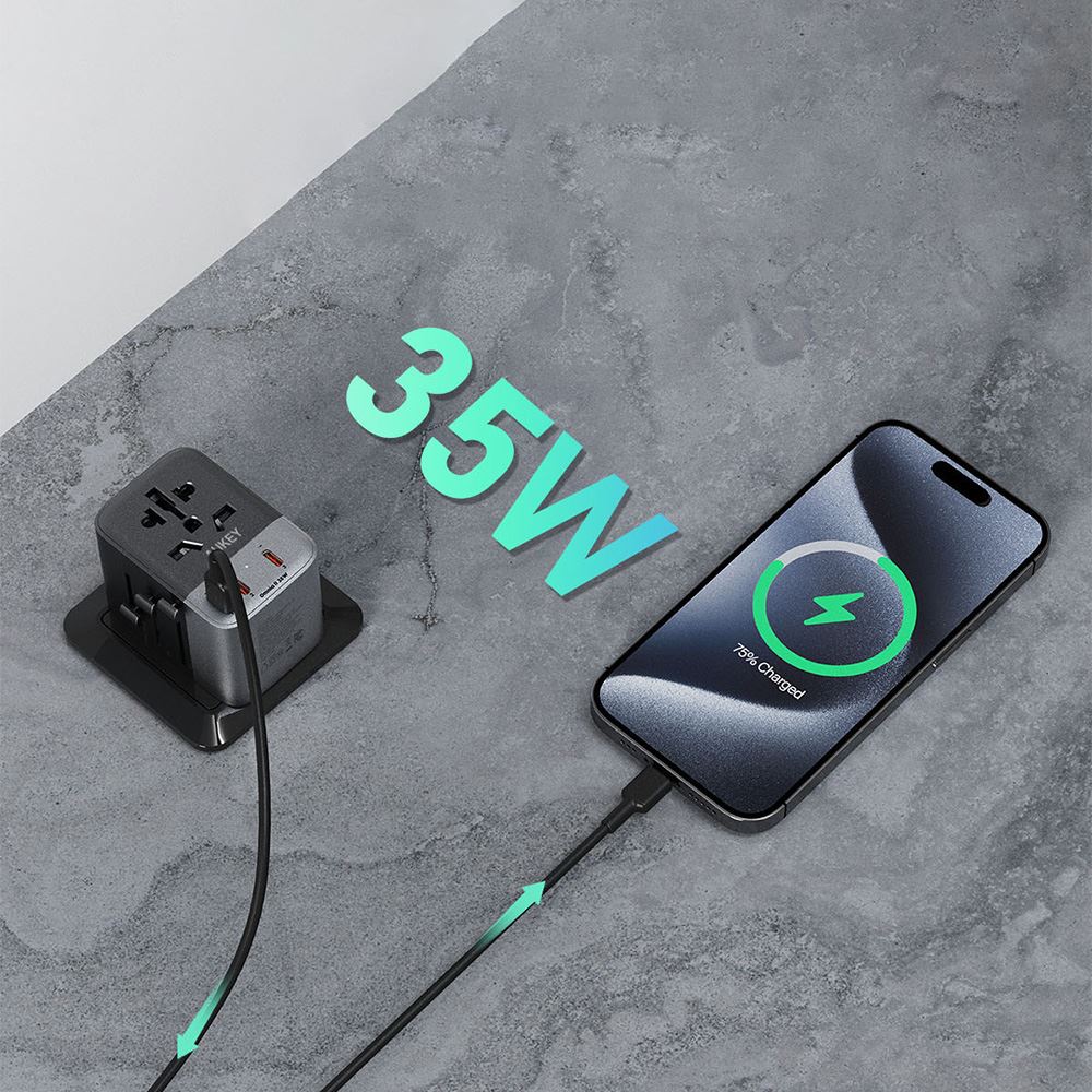 Adapter sạc du lịch đa cổng PD 35W Aukey PA-TA07A là giải pháp sạc tiện lợi dành cho người dùng thường xuyên sử dụng nhiều thiết bị điện tử. Sở hữu công suất mạnh mẽ, khả năng sạc nhanh ổn định cùng thiết kế gọn nhẹ, sản phẩm giúp bạn dễ dàng nạp năng lượng cho điện thoại và các thiết bị khác mọi lúc, mọi nơi.