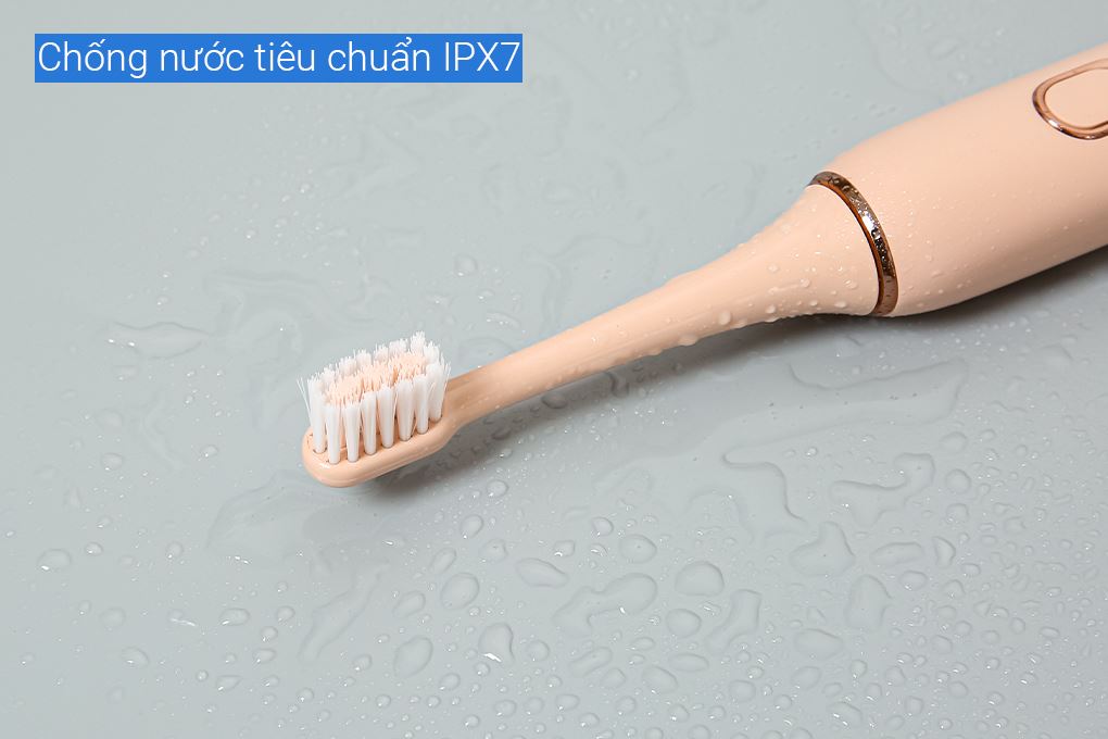 Đầu bàn chải thiết kế nghiêng tạo sự tiếp cận dễ dàng hơn đến các vị trí khó, đồng thời toàn bộ thân máy đạt chuẩn chống nước IPX7 nên có thể rửa trực tiếp dưới vòi nước sau mỗi lần sử dụng, giữ sản phẩm luôn sạch sẽ và bền bỉ.