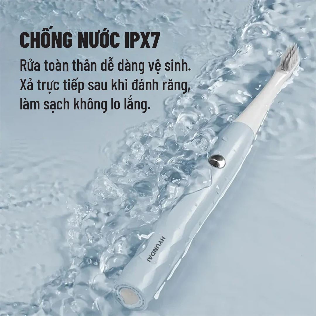 Bàn chải điện Hyundai gây ấn tượng mạnh với thiết kế nhỏ gọn, màu đen sang trọng. Sản phẩm được trang bị 2 đầu bàn chải độc lập, với lông DuPont siêu mềm mịn, nhẹ nhàng làm sạch mà không gây tổn thương nướu, đồng thời được khuyến nghị thay thế sau khoảng 3 tháng sử dụng để đảm bảo hiệu quả vệ sinh tối ưu.