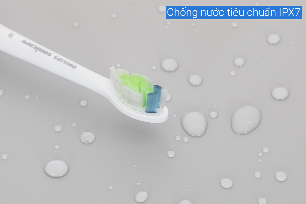 - Chuẩn chống nước IPX7 giúp bàn chải điện Philips hoạt động ổn định trong môi trường ẩm như phòng tắm, đảm bảo an toàn khi sử dụng hằng ngày và bảo vệ linh kiện khỏi hơi ẩm hoặc nước bắn.