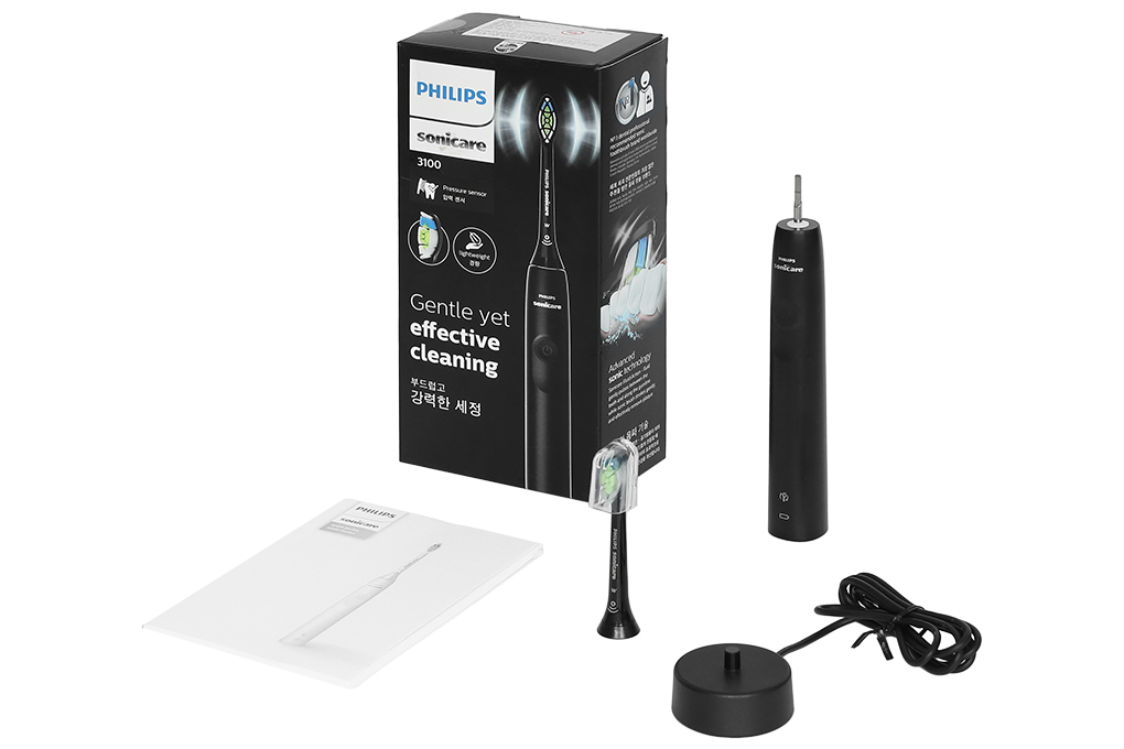 - Phụ kiện đi kèm gồm thân máy, 1 đầu bàn chải và đế sạc không dây nhỏ gọn, tiện lợi khi sử dụng và bảo quản.