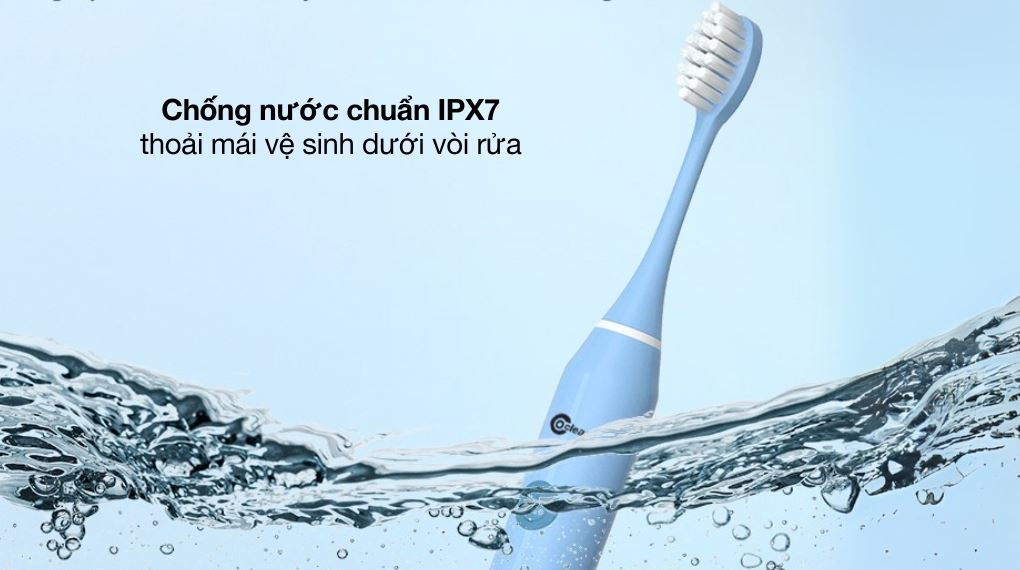Bàn chải có khả năng chống nước IPX7 nên có thể rửa trực tiếp dưới vòi nước mà không lo bị hỏng. Trẻ cũng có thể yên tâm sử dụng trong nhà tắm làm cho việc đánh răng mỗi ngày vừa an toàn vừa thoải mái.