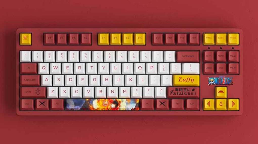 Về vẻ ngoài tổng thể, keycap của sản phẩm được lấy cảm hứng từ chủ đề One Piece với những gam màu sắc tươi sáng, hài hòa giữa đỏ, vàng, trắng và xanh dương, mang đến vẻ ngoài ấn tượng và dễ nhận diện đối với cộng đồng yêu thích anime.