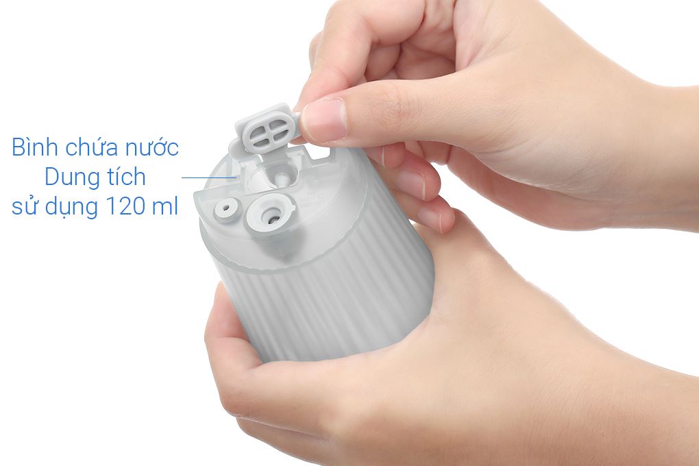 - Dung tích bình nước là 120 ml, có thể dễ dàng tháo rời để châm đầy nước bất cứ khi nào bạn cần trong quá trình ủi. Với mức dung tích này, bạn có thể ủi khoảng 2 - 3 bộ quần áo mà không cần phải bổ sung thêm nước nhiều lần.
