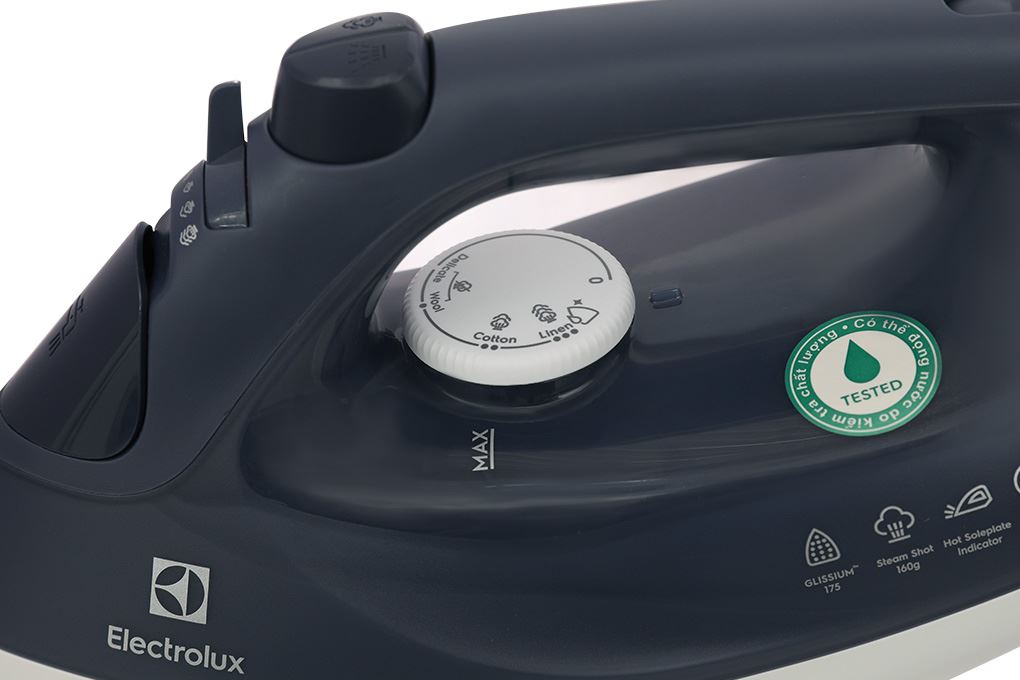 Bảng điều khiển của Electrolux E6SI3-61NW được thiết kế trực quan, dễ thao tác. Núm xoay trung tâm cho phép người dùng điều chỉnh nhiệt độ phù hợp với từng loại vải, tránh hư hại sợi vải khi ủi.