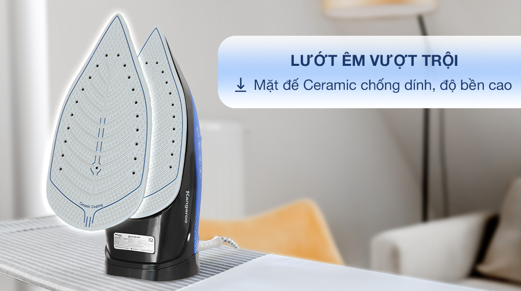 • Mặt đế Ceramic chống dính lướt êm ái trên mặt vải.