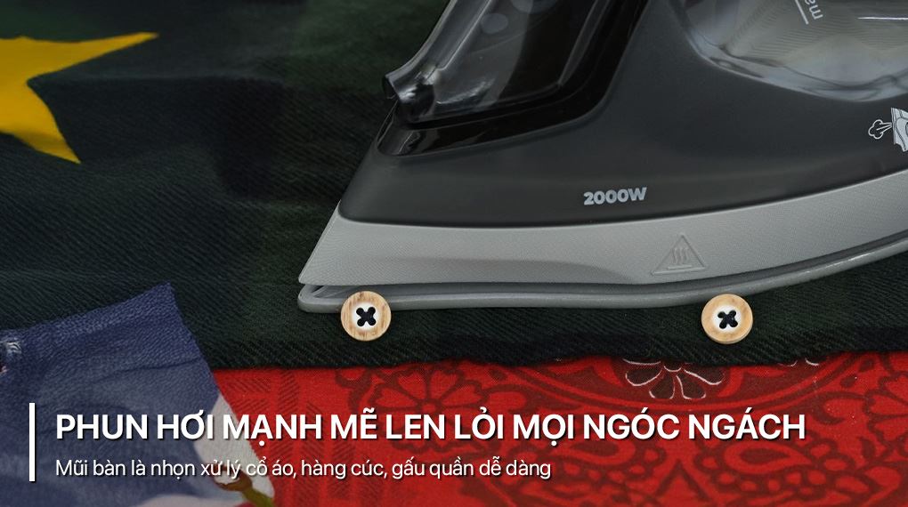 Công suất mạnh mẽ kết hợp bình chứa lớn, giúp ủi quần áo nhanh chóng, liên tục và an toàn cho mọi loại vải.