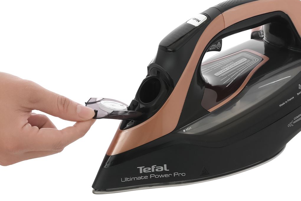 Bàn ủi hơi nước Tefal Ultimate Power Pro FV9E50E0 3200W sử dụng mặt đế Ceramic Durilium AirGlide Autoclean gia nhiệt nhanh, màn hình hiển thị chức năng và công nghệ kiểm soát nhiệt Smart Protect giúp đảm bảo an toàn trong quá trình sử dụng.