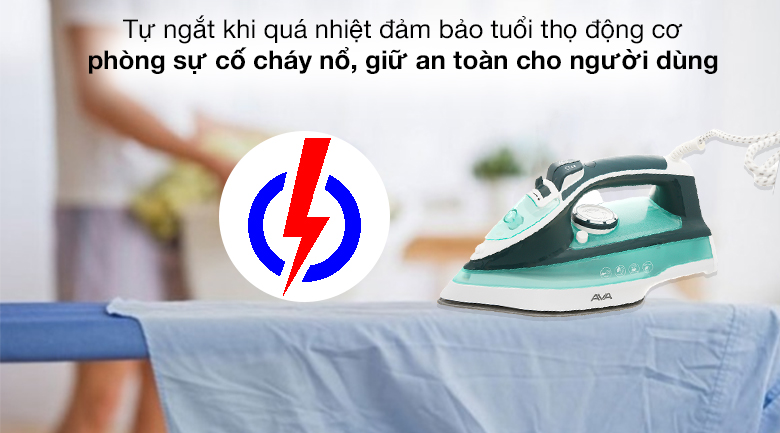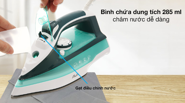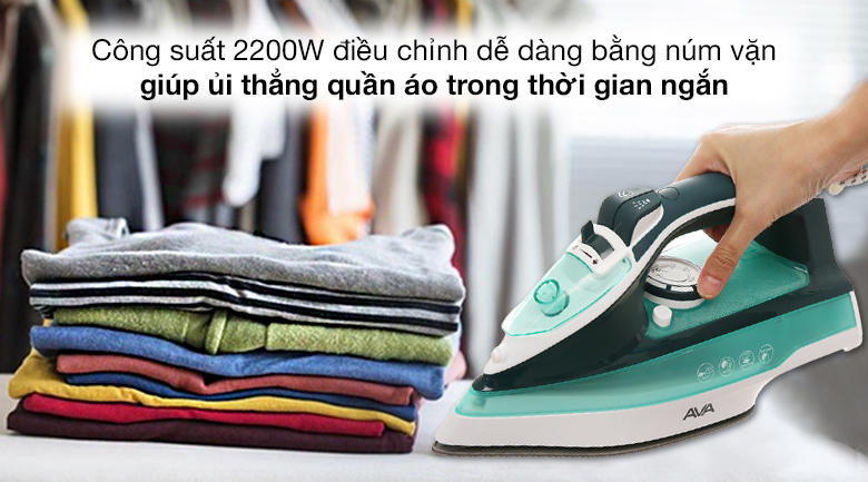 Bàn là hơi nước AVA SW401 công suất 2200W giúp ủi thẳng nhanh quần áo, ủi khô, ủi hơi nước, phun tia tăng cường theo ý muốn, điều chỉnh dễ dàng nhờ núm vặn, thiết kế nhỏ gọn, màu xanh tươi mới, xứng đáng có mặt trong gia đình bạn.