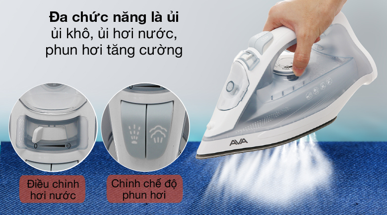 Bàn là hơi nước AVA SW605 công suất 2200W giúp ủi thẳng nhanh quần áo, đa dạng chức năng: ủi khô, ủi hơi nước, phun tia tăng cường theo ý muốn, điều chỉnh linh hoạt nhờ núm vặn, thiết kế nhỏ gọn, màu sắc tinh tế, xứng đáng có mặt trong gia đình bạn.