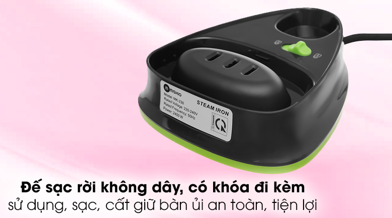 Bàn ủi hơi nước không dây Mishio MK-230 là một thiết bị làm phẳng quần áo hiện đại của thương hiệu Việt Nam uy tín - Mishio, có thiết kế đẹp, tiện dụng, ủi đồ nhanh chóng, lựa chọn lý tưởng cho gia đình Việt.