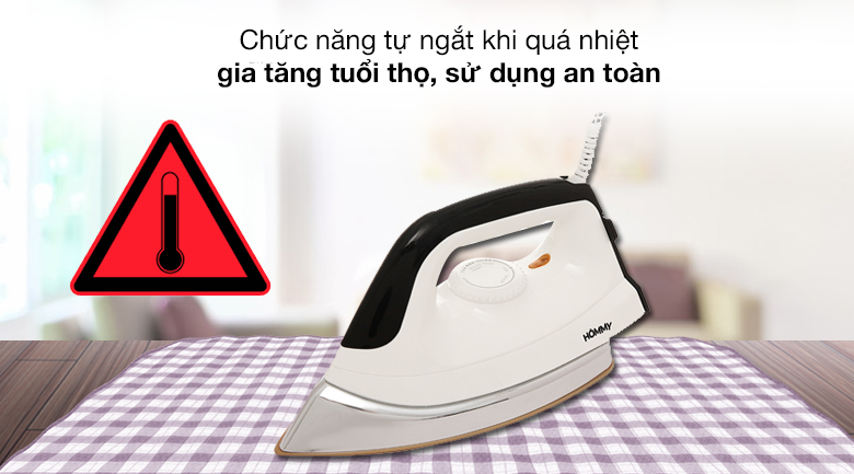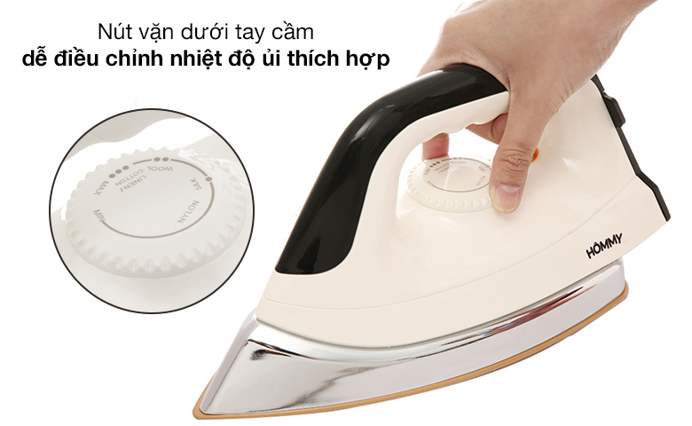 Bàn ủi khô Hommy 755 ủi quần áo nhanh chóng với công suất cao, hoạt động an toàn với chế độ tự động ngắt khi quá nhiệt, bảo đảm hạn chế sự chập cháy, lướt êm trên vải nhờ mặt đế chống dính, xứng đáng có mặt trong mọi gia đình.