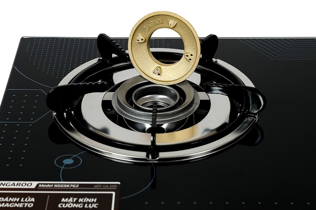 Bếp ga Kangaroo trang bị 2 vùng nấu cùng đầu đốt kín làm từ đồng thau, tạo ngọn lửa xanh ổn định, lan tỏa nhiệt đều khắp đáy nồi. Nhờ đó, các món ăn được nấu chín nhanh mà không làm đen nồi, vừa đảm bảo hương vị vừa giữ dụng cụ bếp sạch đẹp lâu dài.