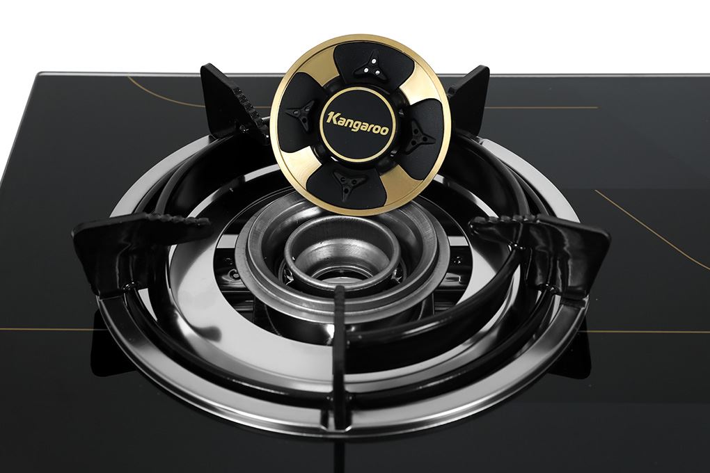 Bếp ga Kangaroo sử dụng đầu đốt kín bằng đồng thau, thiết kế chắc chắn, cho ngọn lửa xanh ổn định và lan tỏa nhiệt đều vừa tiết kiệm thời gian chùi rửa vừa tiết kiệm ga với mức tiêu thụ khoảng 0.2 kg/h/lò.