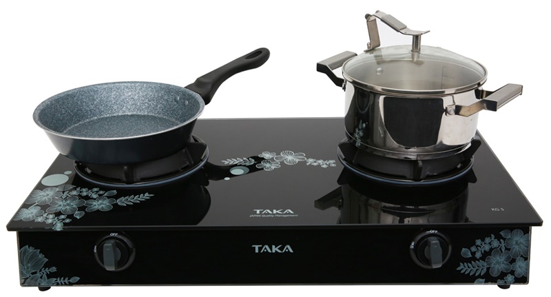 Bếp gas dương Taka KG5 thiết kế hiện đại, có 2 lò đun cho bạn nấu ăn tiện lợi, nhanh chóng, là lựa chọn thích hợp cho mọi căn bếp gia đình.