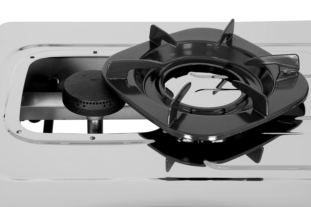 Đầu đốt bếp ga đôi được làm bằng gang dày dặn, hạn chế bào mòn,độ bền cao. Thiết kế đầu đốt kín giúp tiết kiệm gas.