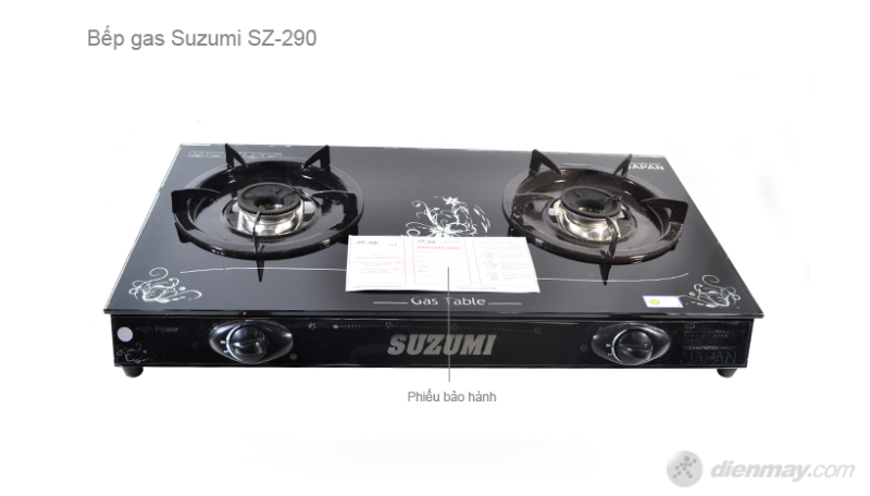 Bếp gas Suzumi SZ-290 là loại bếp gas dương kính có bề mặt bếp sang trọng và dễ lau chùi. Đây là loại bếp gas nổi, toàn bộ bếp được đặt lên trên bàn bếp, dễ dàng dịch chuyển bếp trong quá trình sử dụng.