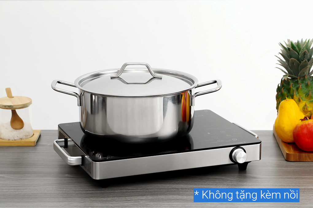 - Bếp sử dụng được với mọi nồi, chảo từ chất liệu inox, gang đến thủy tinh.