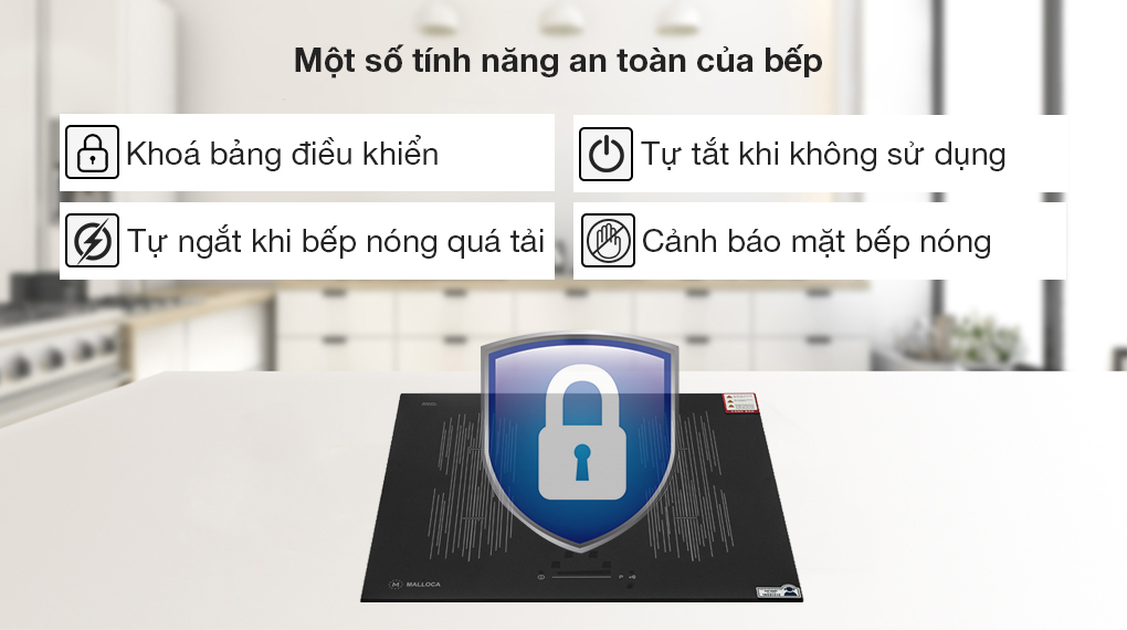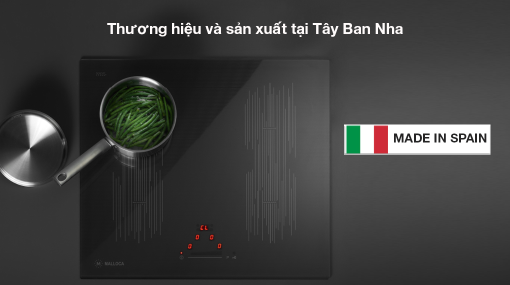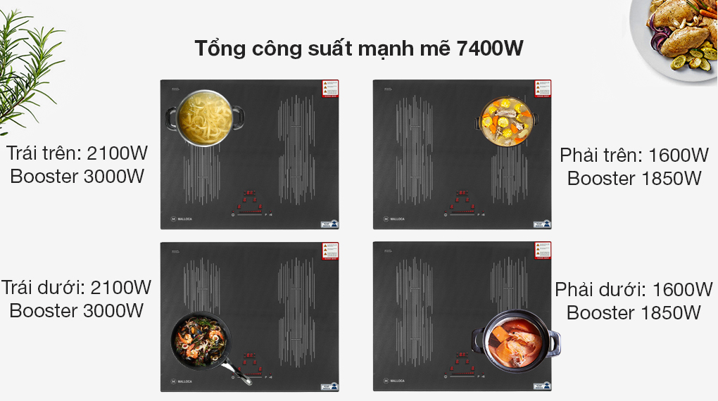 - Mẫu bếp từ Malloca này có tổng công suất 7400W.