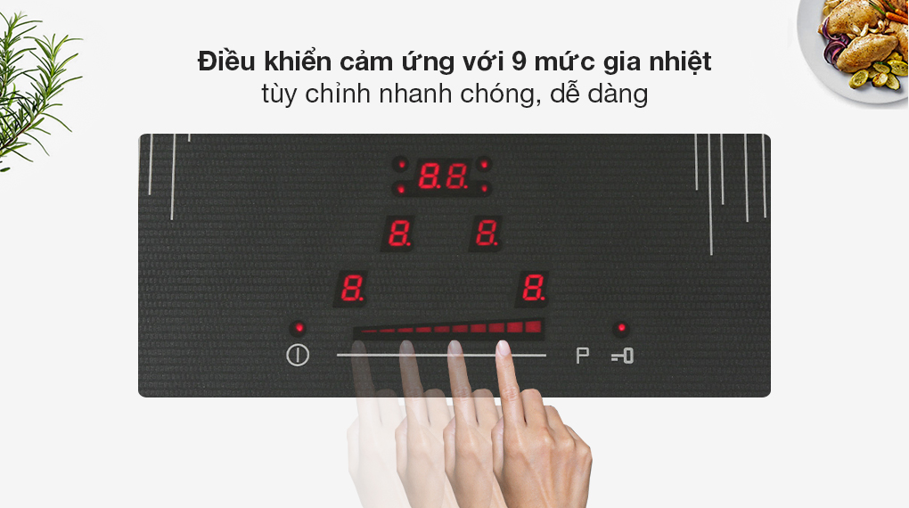 - Tích hợp bảng điều khiển cảm ứng trượt giúp bạn tùy chọn 9 mức gia nhiệt dễ dàng, theo dõi chính xác qua màn hình LED sắc nét.