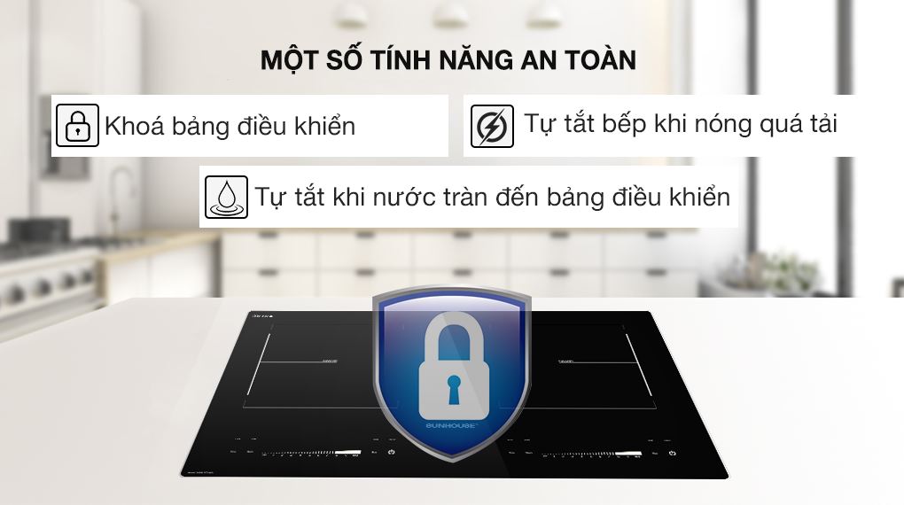 - Tự tắt bếp khi nước tràn đến bảng điều khiển.
