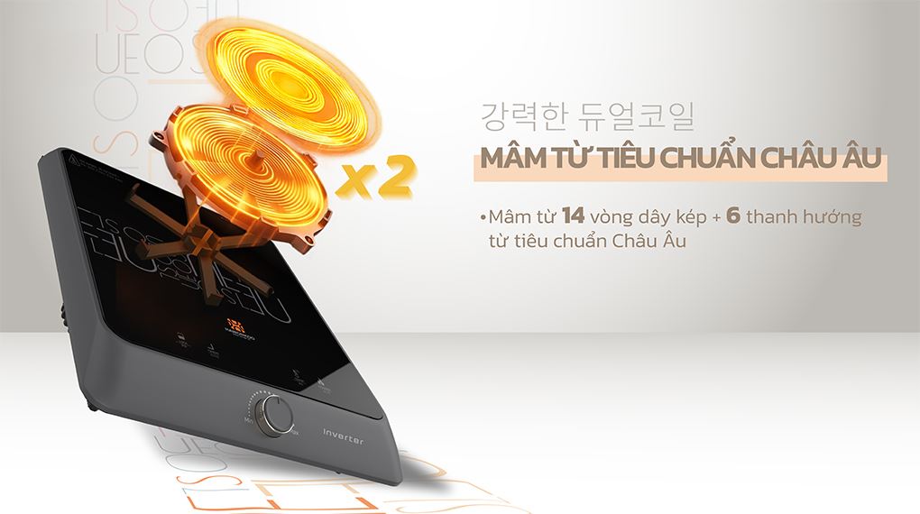 Phần mâm từ đường kính 16 cm được cấu tạo từ 14 vòng dây kép, bên ngoài phủ lớp sơn cách điện emay đạt tiêu chuẩn Châu Âu. Thiết kế này góp phần tăng độ an toàn trong quá trình sử dụng, đồng thời hỗ trợ hiệu quả truyền nhiệt.