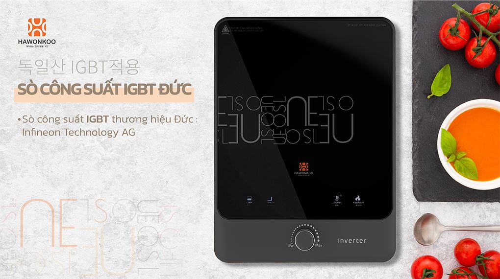 Bếp từ Hawonkoo sử dụng sò công suất IGBT từ Infineon Technology AG (Đức). Đây là linh kiện quan trọng trong việc kiểm soát công suất và duy trì khả năng gia nhiệt ổn định trong suốt quá trình hoạt động.