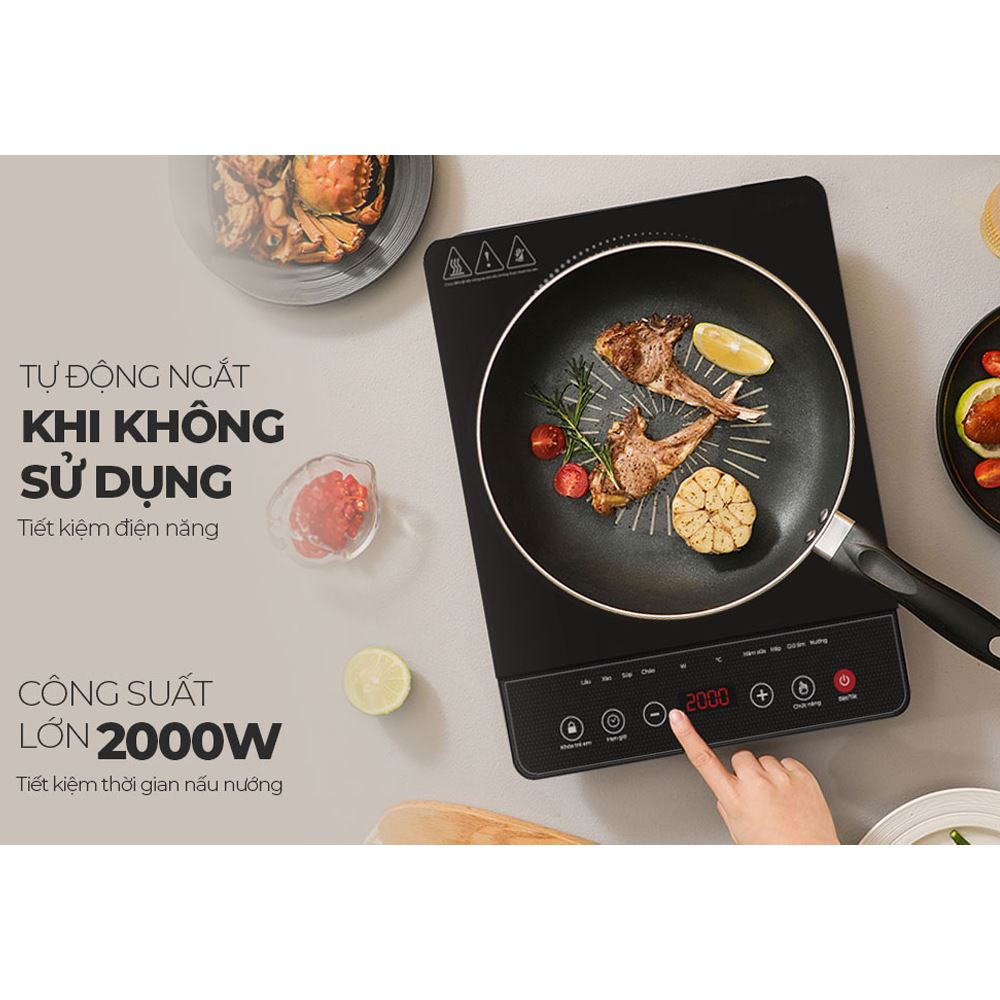 Chiếc bếp từ này sở hữu tổng công suất 2000W, giúp việc nấu nướng trở nên nhanh chóng và hiệu quả hơn bao giờ hết. Bạn có thể dễ dàng chuẩn bị các món ăn yêu thích chỉ trong tích tắc, tiết kiệm đáng kể thời gian và năng lượng. Kích thước vùng nấu linh hoạt từ Ø 14 - 26 cm, phù hợp với đa dạng các loại nồi, chảo đáy bắt từ, đảm bảo món ăn luôn chín đều và thơm ngon.