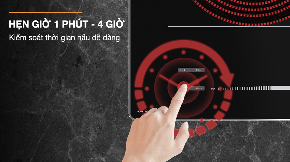 - Bảng điều khiển cảm ứng trượt nhạy giúp dễ dàng điều chỉnh công suất từ mức 1 đến mức 9.