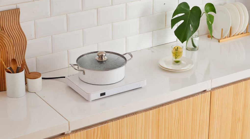 Bếp từ đơn này có kích thước nhỏ gọn, kiểu dáng mỏng, chỉ nặng 3.13 kg, 1 vùng nấu, có thể đặt ngay tại bàn ăn tiện lợi. Bếp có màu trắng trang nhã, tăng thêm tính thẩm mỹ cho không gian bếp.