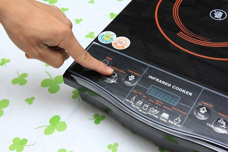 Bếp hồng ngoại còn được tích hợp chức năng hẹn giờ nấu thông minh với khả năng tự động tắt bếp sau khoảng thời gian mà bạn mong muốn. Tính năng này giúp người sử dụng có thể thoải mái nấu nướng và làm những công việc nội trợ khác như lau nhà, rửa chén bát hoặc chăm sóc con… cùng một lúc mà không lo món ăn bị cháy khét, mang lại sự an toàn khi sử dụng (Xem thêm Các chế độ bảo vệ an toàn trên bếp hồng ngoại).
