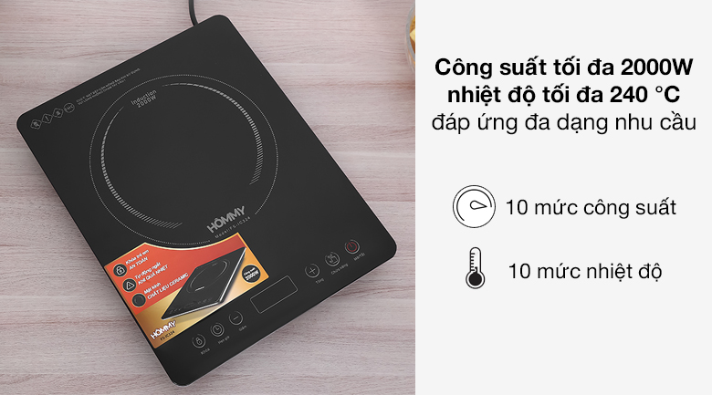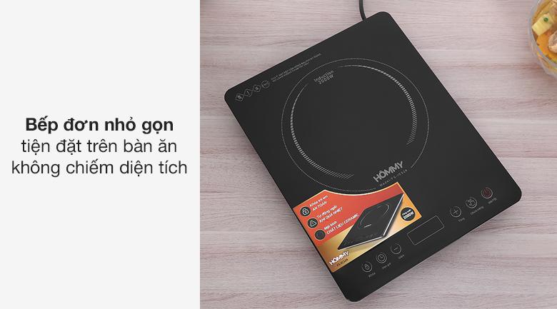 Bếp từ Hommy FS-IC324 hiện đại, cao cấp, nấu ăn nhanh và an toàn với công suất tối đa 2000W, tiện lợi, phục vụ tốt cho gia đình 1 - 2 người hoặc đặt trên bàn ăn trong các bữa tiệc lẩu, nướng,...