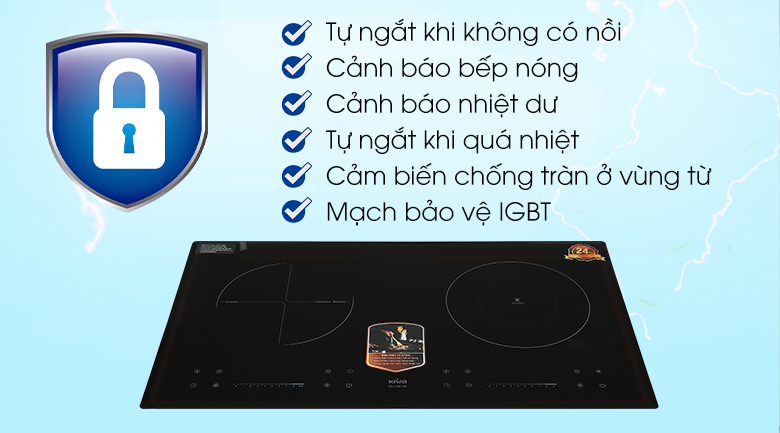- Chức năng tự ngắt khi quá nhiệt giúp đảm bảo nguồn điện luôn ở mức an toàn, tăng độ bền cho bếp và giữ an toàn cho người sử dụng.
