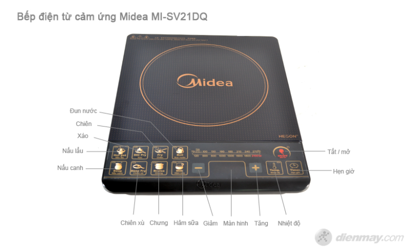 Công suất/Nhiệt độ (Min-Max): 120 - 2100W/70 - 270 độ C#Bảng điều khiển: Nút bấm, có màn hình hiển thị#Chế độ nấu: 08 chế độ nấu#Đặc điểm nổi bật: Hẹn giờ#Hiệu suất sử dụng năng lượng: 95%#Phụ kiện kèm theo: 01 nồi lẩu- Thương hiệu Trung Quốc.