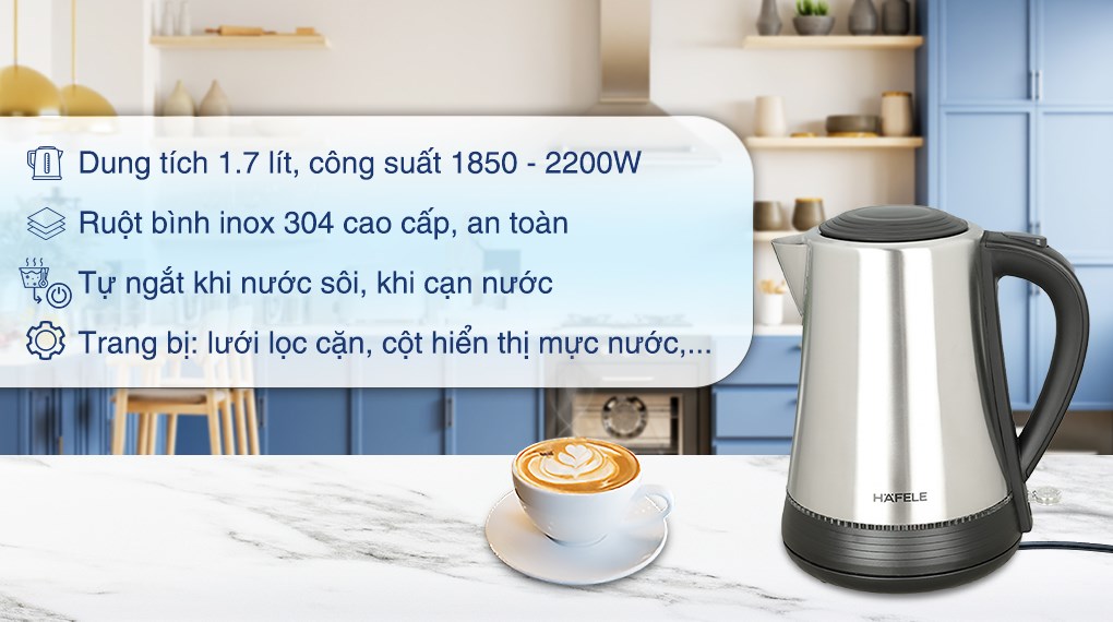 Ấm siêu tốc Hafele nổi bật nhờ thiết kế sang trọng, độ bền cao và nhiều tính năng tiện ích. Nếu bạn đang tìm kiếm một chiếc ấm siêu tốc vừa đẹp vừa an toàn, Hafele chắc chắn là cái tên đáng để cân nhắc. Bài viết sau sẽ giúp bạn hiểu rõ hơn về thương hiệu, chất lượng, lý do vì sao ấm siêu tốc Hafele được ưa chuộng tại Việt Nam.