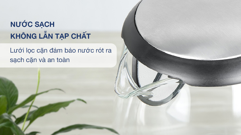 - Vỏ bình và ruột bình làm bằng thủy tinh bền đẹp, dễ dàng quan sát tình trạng nước sôi bên trong.