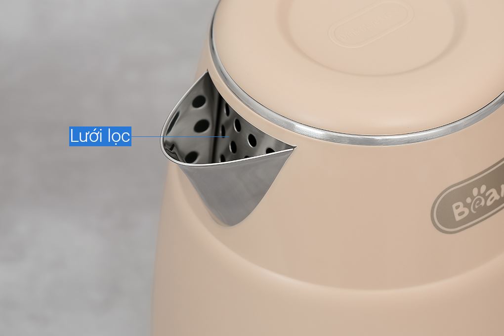 - Bình đun siêu tốc Bear có dung tích 1.5 lít đáp ứng nhu cầu dùng nước nóng hằng ngày để pha trà, pha cà phê, nấu mì,... trong gia đình hoặc văn phòng ít người.