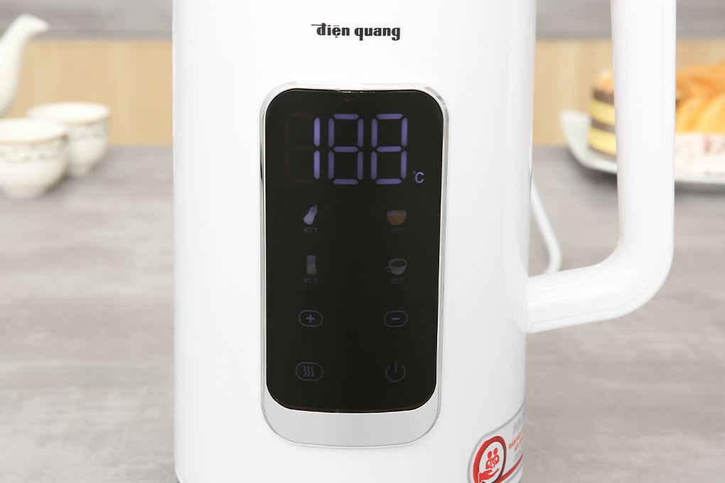 Bình đun siêu tốc Điện Quang được trang bị bảng điều khiển cảm ứng hiện đại kết hợp màn hình hiển thị nhiệt độ rõ ràng, cho phép người dùng dễ dàng thao tác.