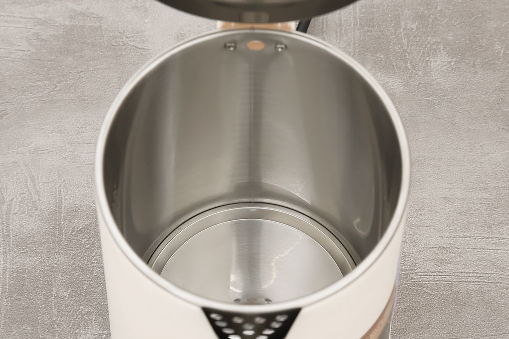 Ruột bình bằng inox 201 sáng bóng, bền bỉ và không gỉ sét, an toàn khi tiếp xúc trực tiếp với nước sôi.