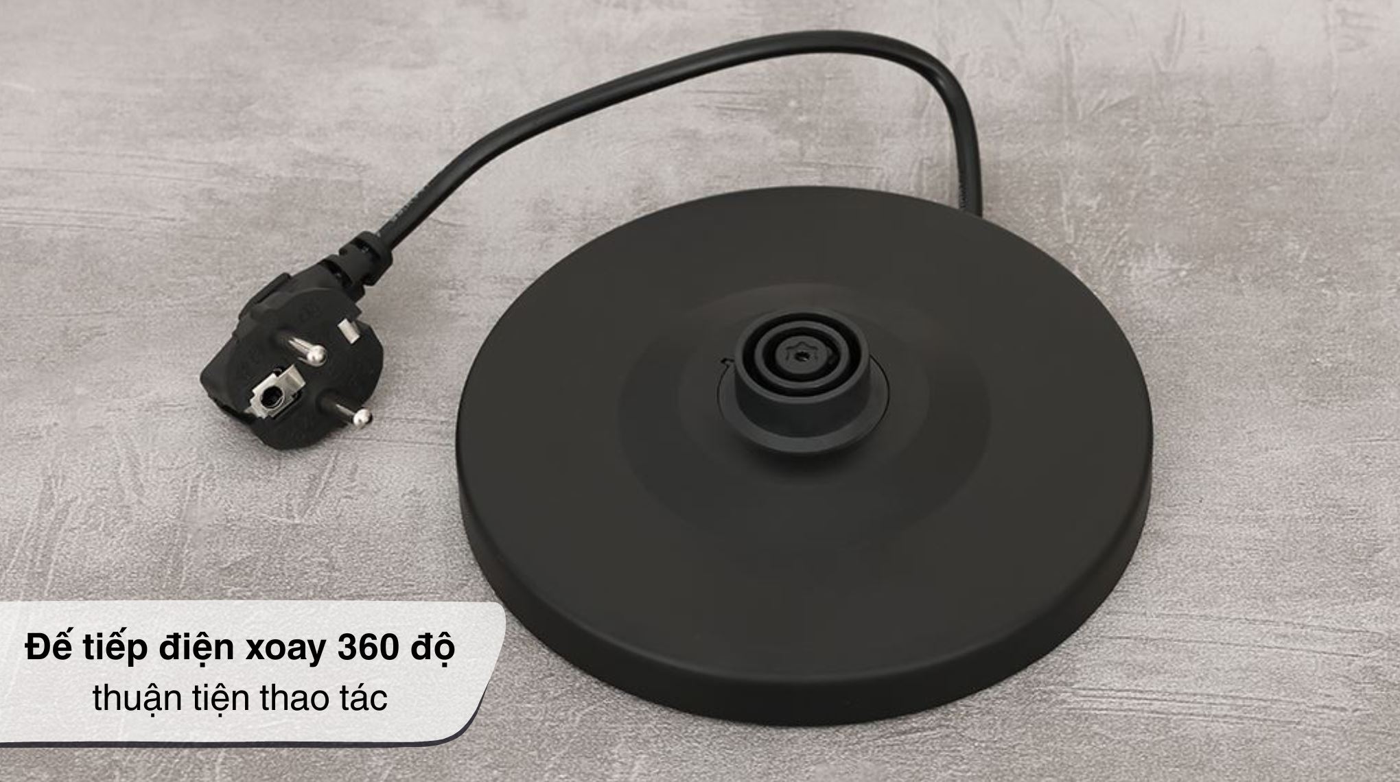 Phần đế tiếp điện xoay 360 độ thuận tiện nhấc đặt bình từ nhiều hướng, đồng thời phía dưới còn có rãnh cuốn dây, giúp thu gọn dây điện khi không sử dụng.
