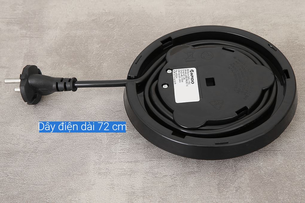 Chiều dài dây điện 72 cm tạo sự thuận tiện khi bố trí gần ổ cắm. Phần đáy có rãnh cuốn dây điện, giữ khu vực sử dụng gọn gàng khi không dùng đến.
