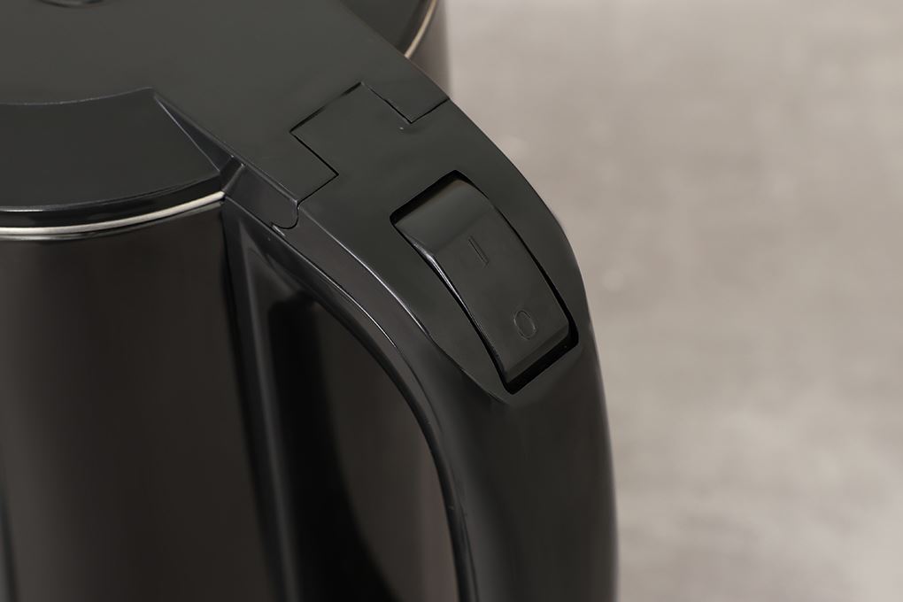 Tay cầm bình đun siêu tốc tích hợp công tắc bật/tắt cùng đèn báo hoạt động, giúp dễ theo dõi trạng thái đun nước.