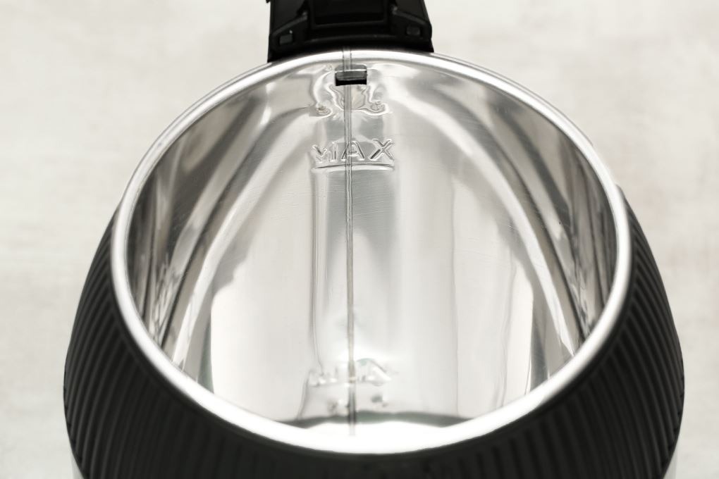 - Mặt trong bình có vạch min (thấp nhất) - max (cao nhất) để quy định mức nước phù hợp khi đun. Nếu mức nước dưới vạch min sẽ khiến nước nhanh bị cạn, dễ tạo thành chất cặn trong đáy ấm. Nếu nước bên trên vạch max (nhiều nhất) sẽ dễ làm nước bị trào ra ngoài gây nguy hiểm.