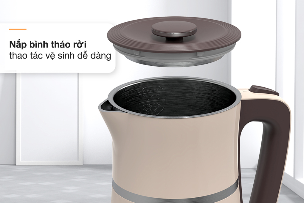- Nắp ấm có thể tháo rời cũng là một điểm cộng giúp việc làm sạch bình trở nên dễ dàng hơn.