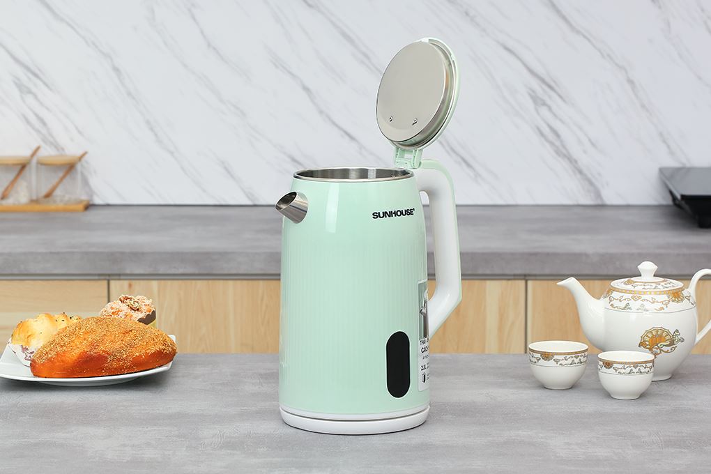 - Bình đun siêu tốc Sunhouse có dung tích 2.8 lít đáp ứng nhu cầu dùng nước nóng hằng ngày để pha trà, pha cà phê, nấu mì,... trong gia đình hoặc văn phòng.