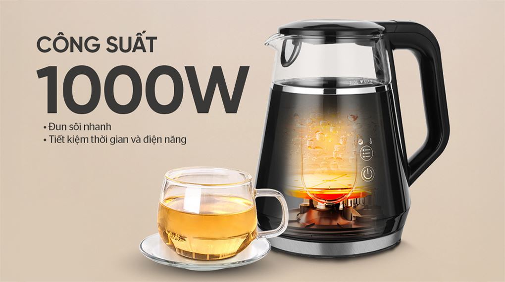 Công suất 1000W hỗ trợ làm nóng nước nhanh chóng, tiết kiệm thời gian khi pha chế đồ uống nóng.